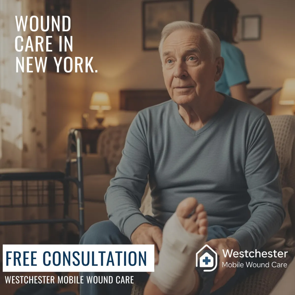If your wound hasn’t healed in 30+ days, you may qualify for advanced, in-home treatments in Westchester County. Start with a short phone consultation with our doctor. If likely eligible, we schedule a nurse practitioner home visit and handle your Medicare Part B paperwork. Our team helps 95% of patients heal within 12 weeks. Results vary.